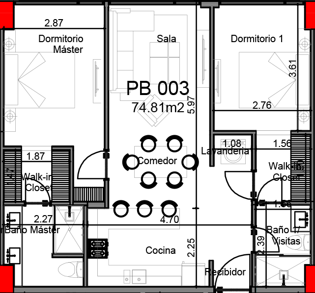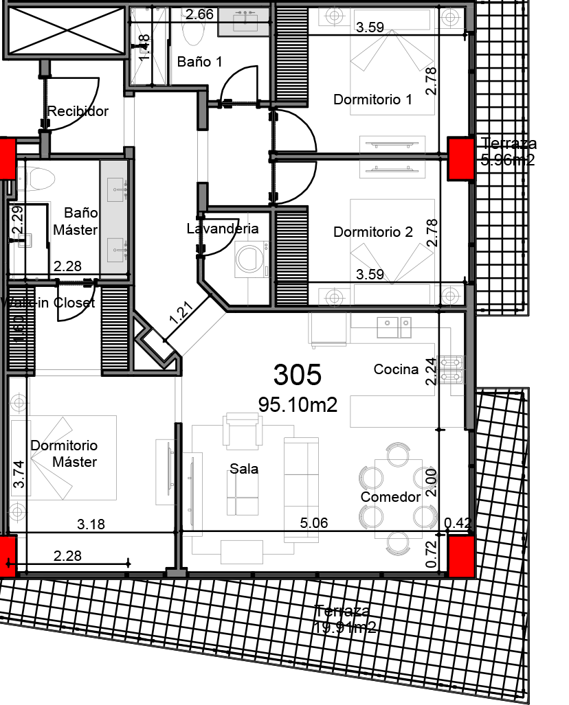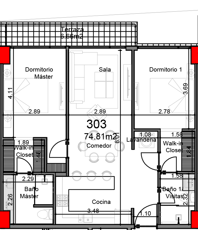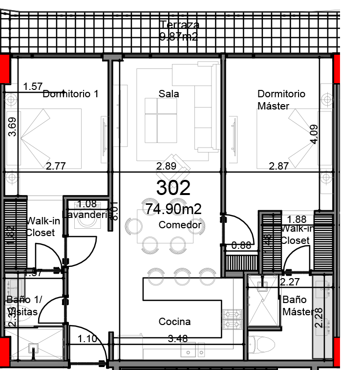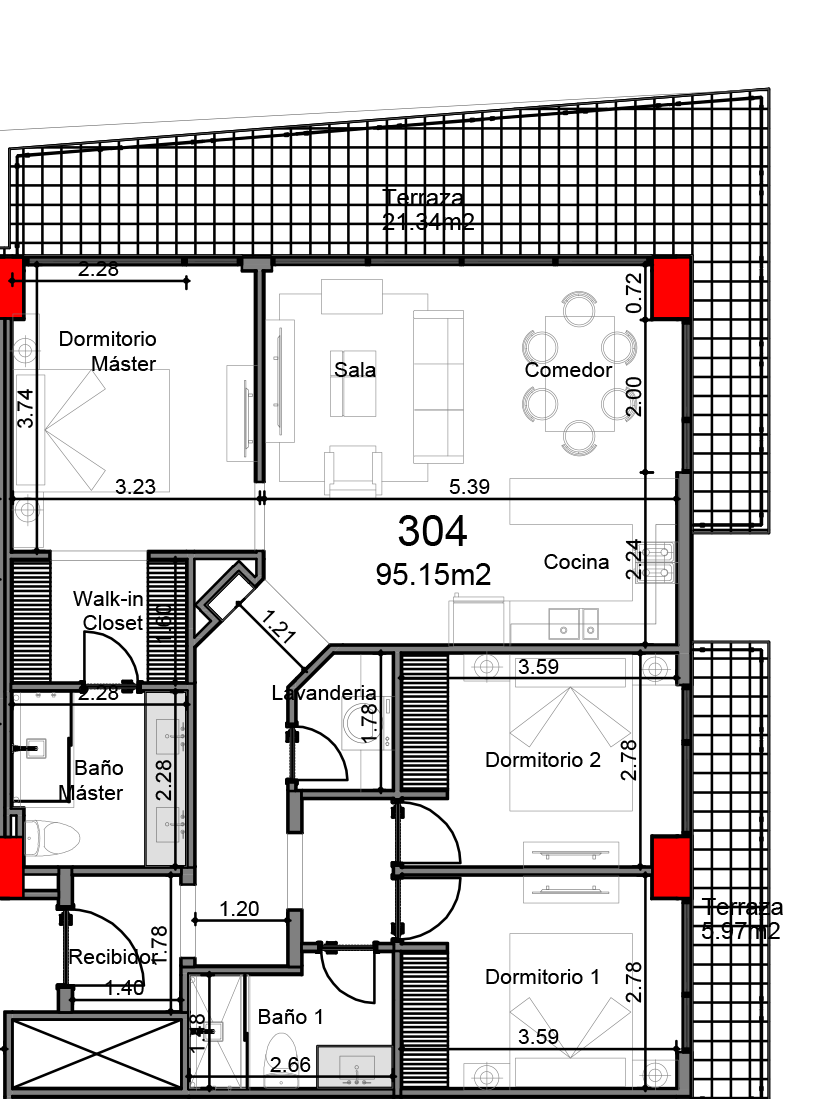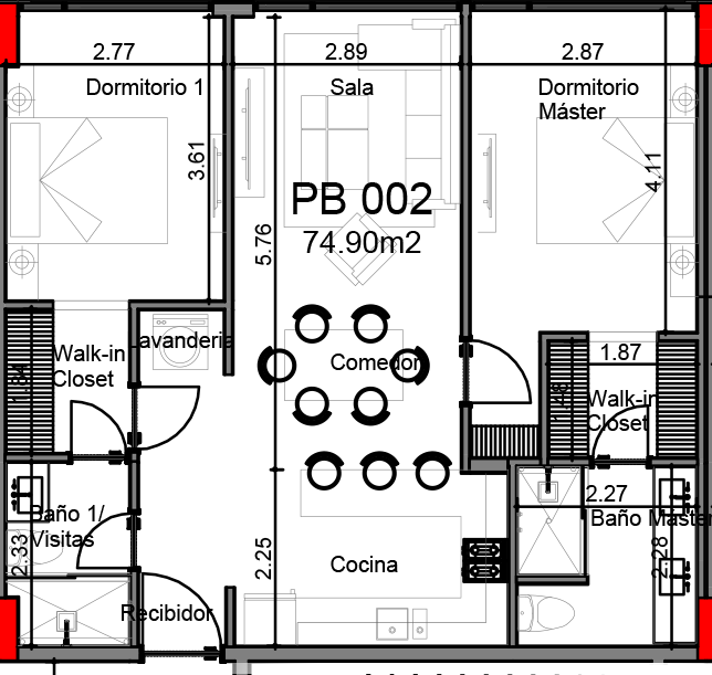 Del primer al quinto piso los departamento son similares, solo cambia la vista.