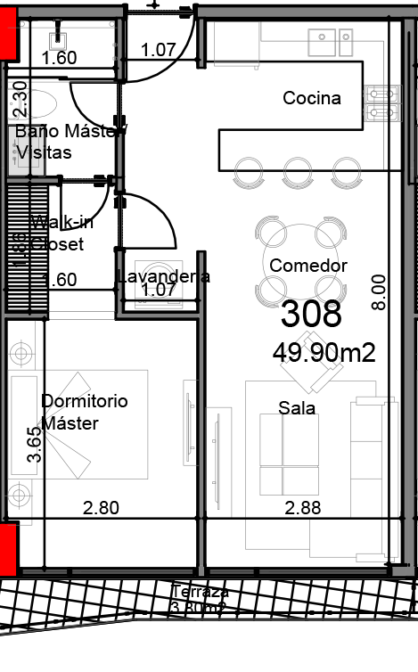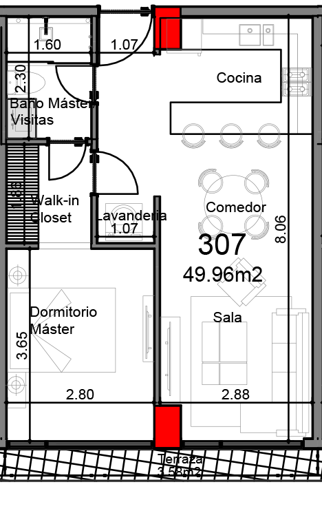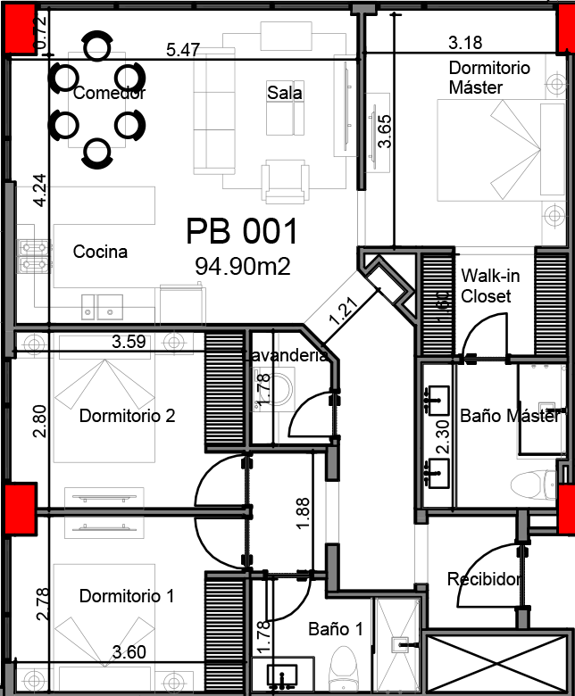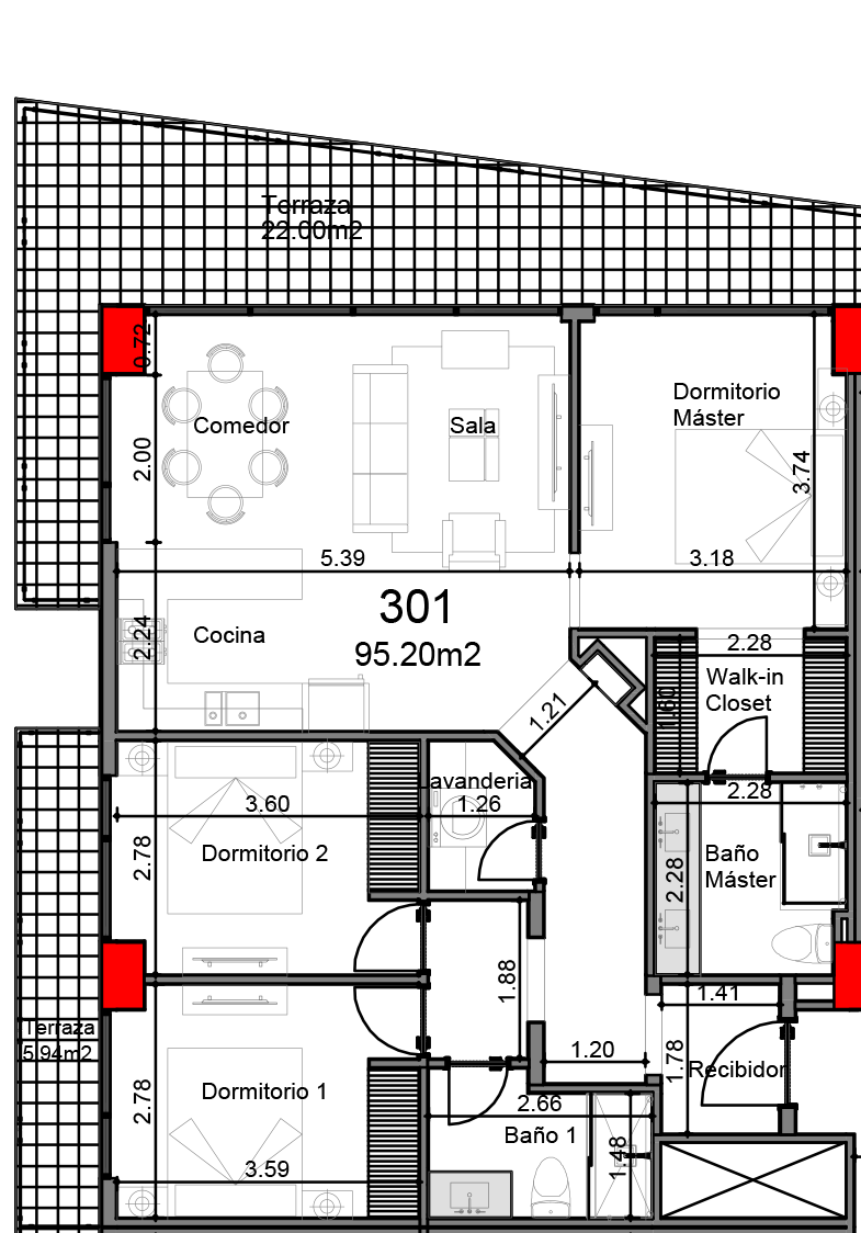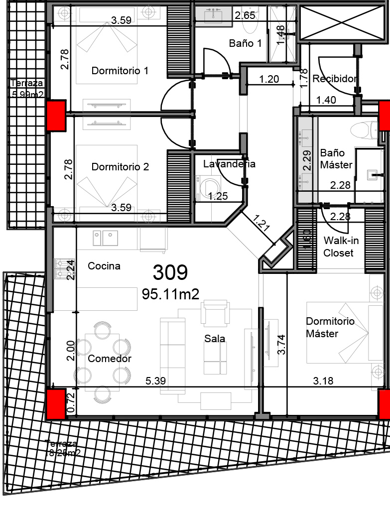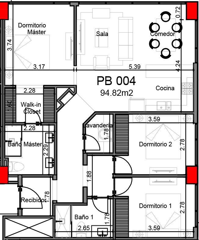Del primer al quinto piso los departamento son similares, solo cambia la vista.